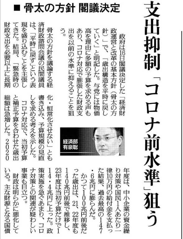 岸田内閣の骨太の方針は、喉に刺さる骨太に