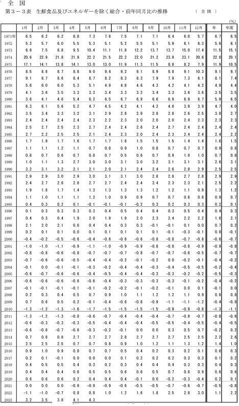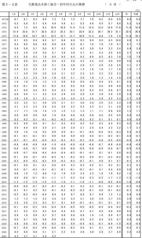 一方、生鮮食品を除く食料は9.2%と、1975年10月