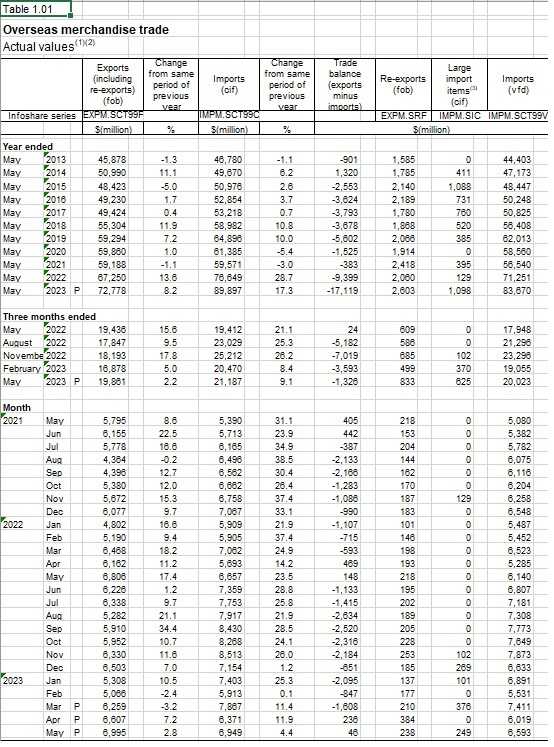 NewZealandの2024年10月の貿易収支 Nov 25, 2024