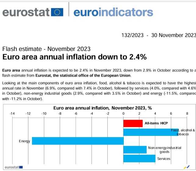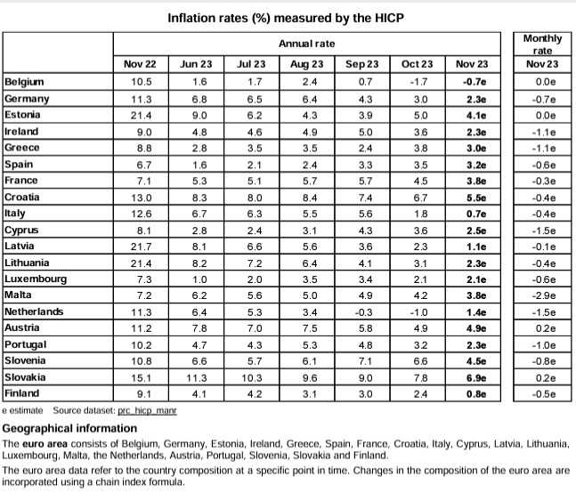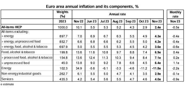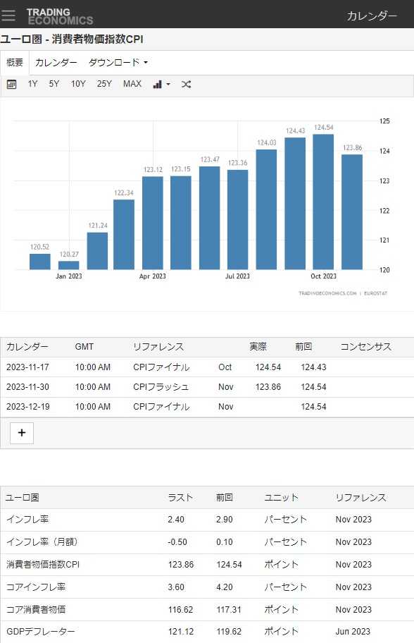 ​​​ ​​ユーロ圏の2023年11月のHICP