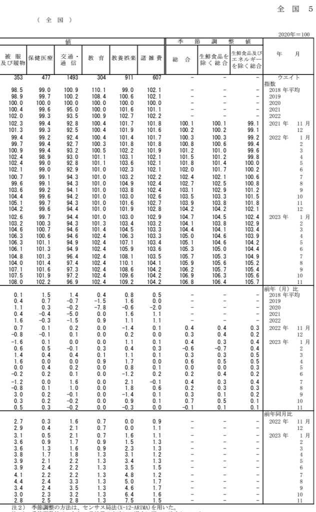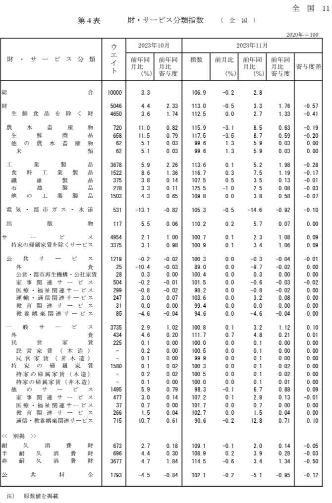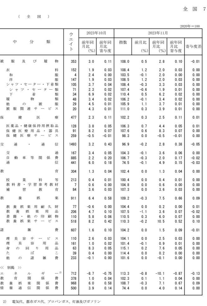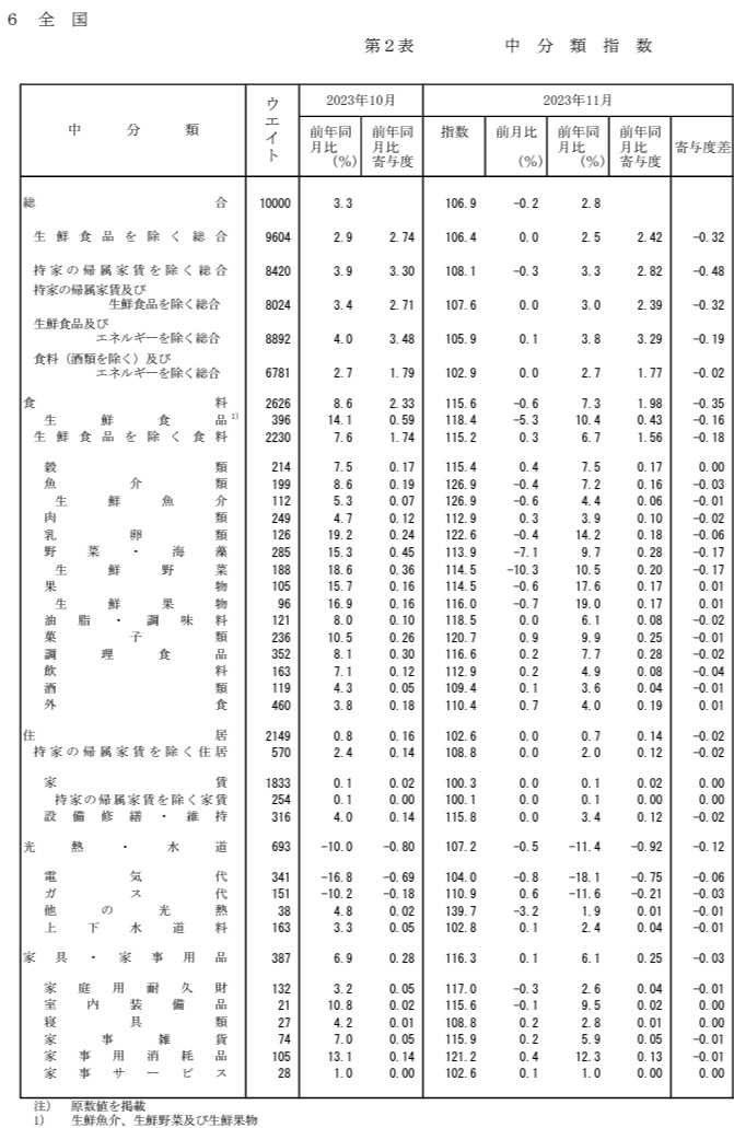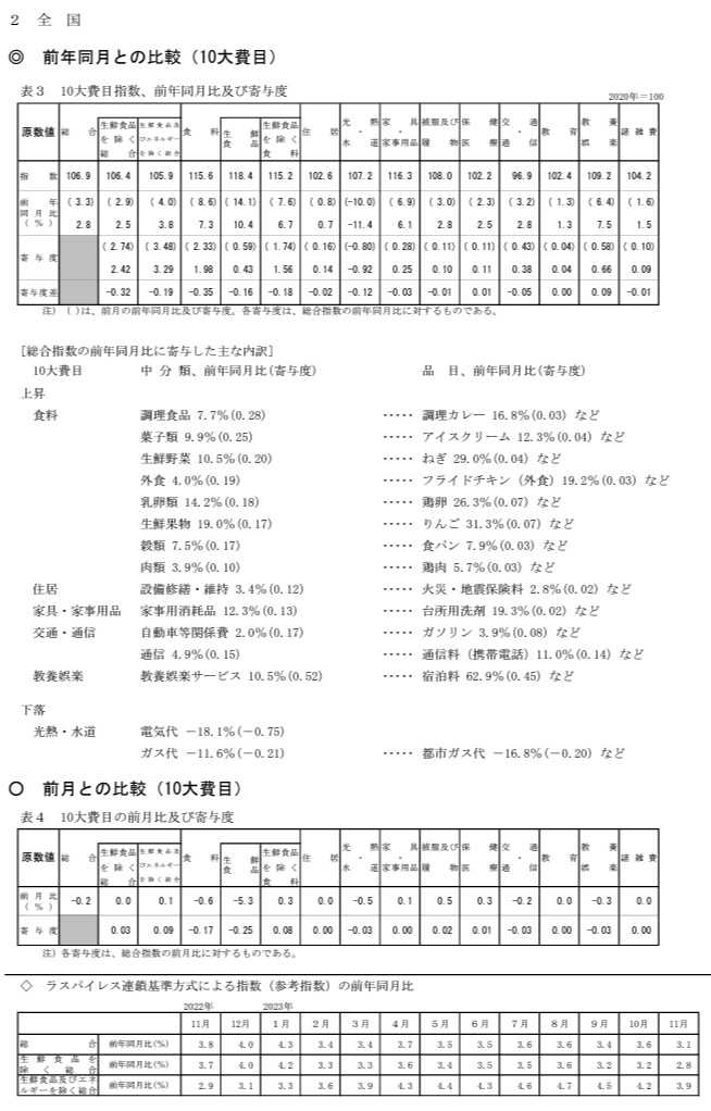 生鮮食品とエネルギーを除いた総合指数は2.8%