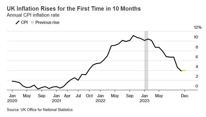 23年12月のCPI、前年同月比4%上昇-