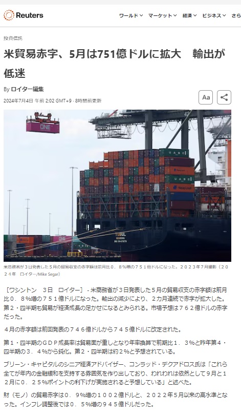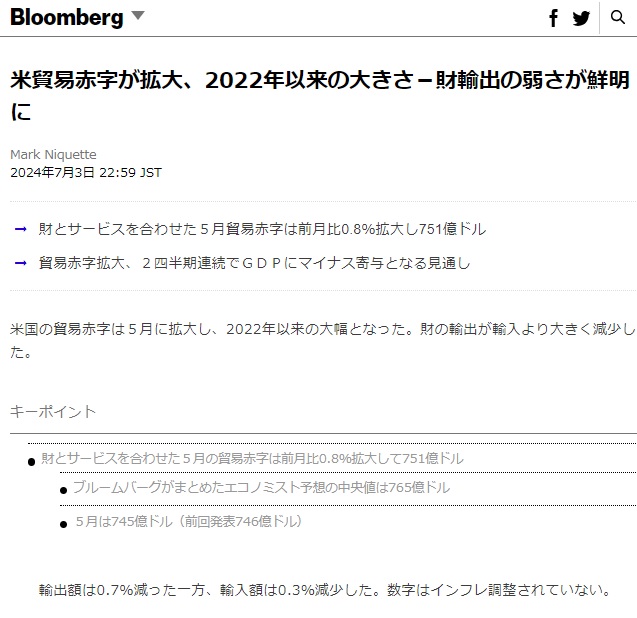 Ⅰ.USAの2024Mayの貿易収支