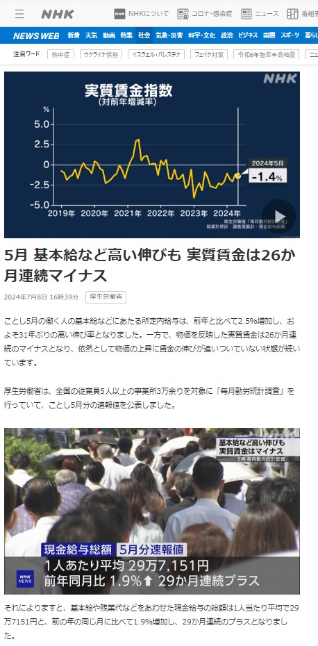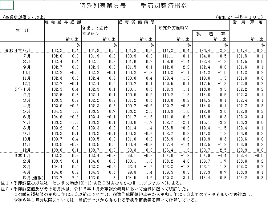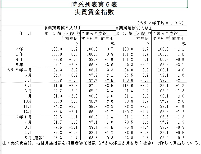 Ⅰ.2024年5月分の実質賃金指数