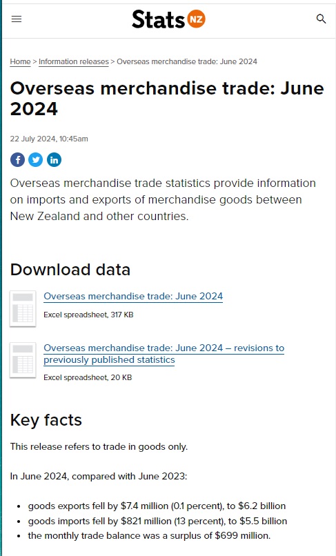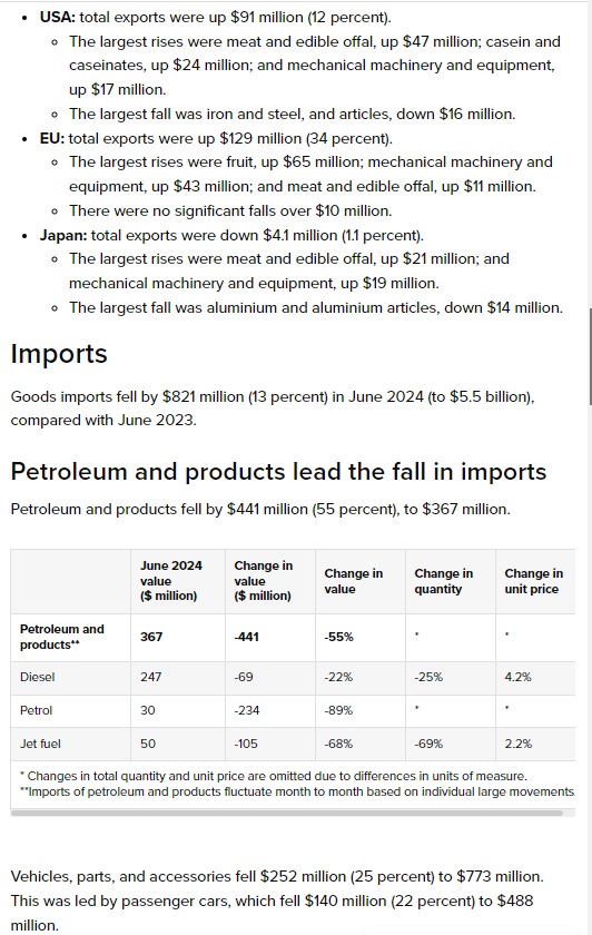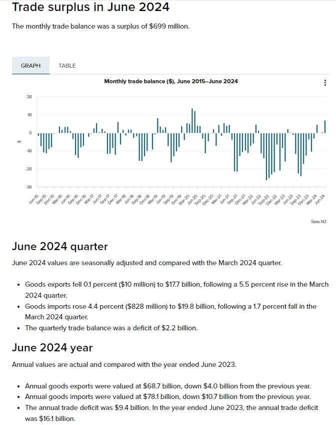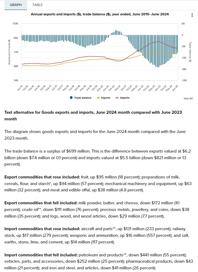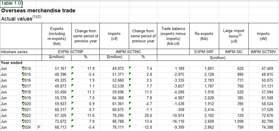 Ⅰ.NZ貿易収支2024年6月度