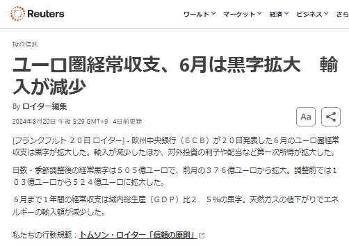 ​Ⅰ.2024JuneのEUROの経常収支​