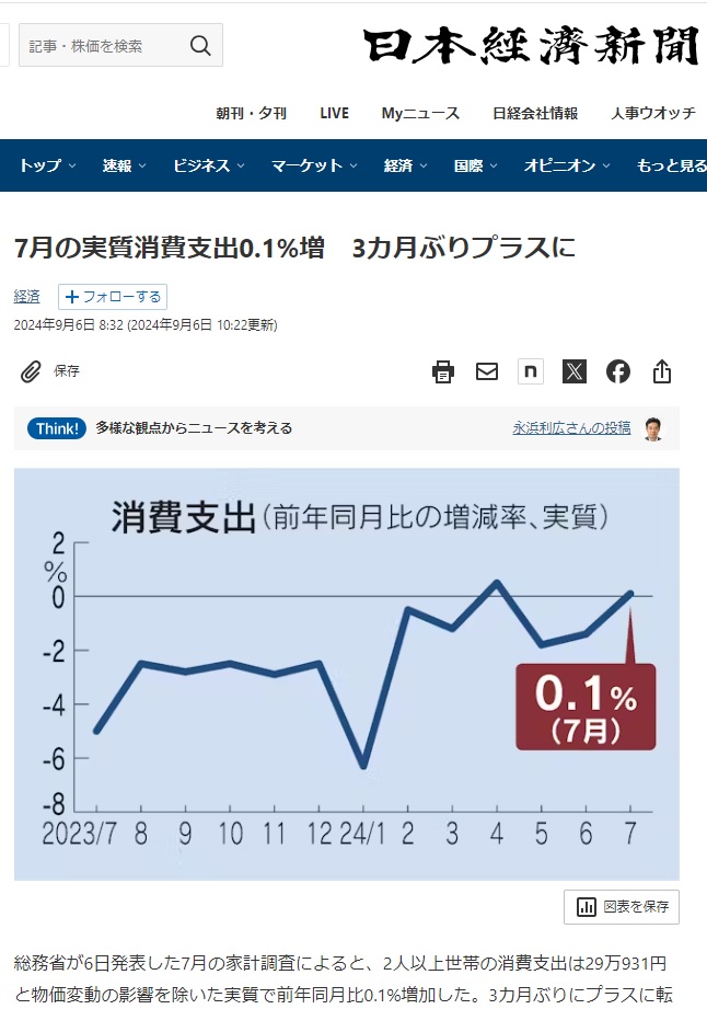 ~実質の消費前年同期比0.1%増は3カ月ぶり