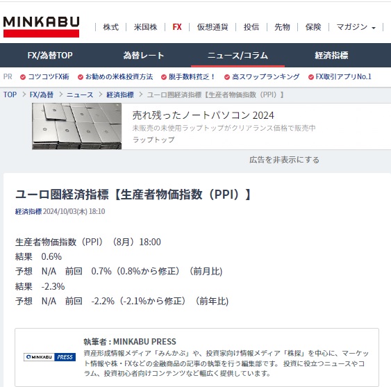 Ⅰ.EUROSTATのPPI(Total Industry~