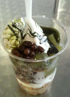 和匠庵 なめらか抹茶パフェ(抹茶ソース付)セブンイレブンも抹茶モノ結構出てますよね和匠庵シリーズです。 値段は¥290 付属のカップに入った抹茶ソースをかけて食べるのです☆ 写メでは黒蜜っぽい色になってしまいましたが、抹茶ソースです。 下にあるのは抹茶プリンかと思っていたら、違いました(´△`)↓ ゼリーかと思うくらいあっさりさっぱりで・・・ 全体的にイマイチな感じ( ̄~ ̄;)ウーン… 抹茶の濃厚さは一切ないし、味にパンチがないというか、物足りなかったですね。 あ、でも白玉は美味しかったw ランキングに参加しています。↑もしよろしければバナークリックお願いします(*^▽^*)