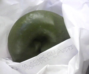 DOUGHNUT PLANT(ドーナッツプラント) ケーキドーナツ抹茶11/7~12/26限定発売のドーナツです。 値段は290円 色はちょっとだけグロテスクw コーティングされた抹茶チョコは見た目通り、くどい気がしたけど、 コーティングが薄いので、それほど気になりませんでした。 このケーキドーナツ、卵は不使用で、生地に寒天が使われているそうです。 モッチリ感が一切ないドーナツなんですが、美味しいふわっとしてるんだけどしっとり、みたいな不思議な食感でした。 でも、抹茶よりも一緒に買った「バニラビーンズ」の方が断然美味しかったですレンジでチンして温めて食べたら美味しさ倍増バニラの甘い香りが漂って最高でした