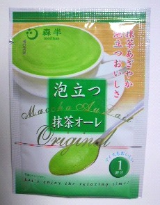森半 泡立つ抹茶オーレ楽天の京都・宇治・お茶の森半でギフトを購入したら、 明細書と一緒にこれを同封して下さいました。嬉しいお心遣い (値段は、通常は30袋1575円) 泡立つと言っても、そんなには泡立たなかったw 甘さ控えめでGOODなのですが、抹茶がもっと濃い方がいいかな。 お湯で作るよりも、ホットミルクで溶かした方が私好みになるかもと思いました。 ちょっと味が薄く感じでしまったので・・・というのも、ティーカップではなく大きいサイズのマグカップを使ってしまったのがいけなかったのかもお湯を注ぎすぎたかな