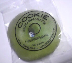 ドーナッツプラント ドーナッツクッキー抹茶前に、これを載せるのを忘れていました値段は200円 ドーナッツクッキーってどうなんだろう ってわくわくしてたんですが・・・めちゃ硬いのねコレ上は抹茶チョコかと思ったら、グレーズでした。甘ーい。 真ん中に穴があいてるからドーナツってだけであとは普通のクッキー。 いや、普通のクッキーよりも硬いかもしれないです<わかりやすいかなと思って撮った写メなんですが、食べかけでごめんなさい> ただ、後味はかすかにドーナツっぽかったw 気のせいかな