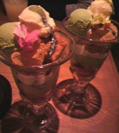 神楽坂 茶寮 抹茶とミルクプリンの和パフェ前から食べたかったこの抹茶パフェ 値段は780円(単品) 私はドリンクもセットで頼みました。その方がお得だし~♪ このパフェ、すごくボリューミィちょこんとのっかってるお花もカワイイ「これ食べれんのかなぁ」と言って口にしてみた相方は、 「苦い…食べるもんじゃないねこれは」と言っていましたw 芋けんぴがささってる抹茶パフェって今までなかったので、それが印象的でした★ それから大福ミニバージョンも入っていました★ 抹茶アイスもバニラアイスも美味で、 ババロアのようなプリンもGOODでした。 また食べに行きたいです!