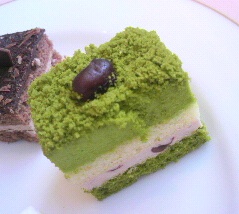 ランチビュッフェで抹茶ケーキとあるランチビュッフェに行ったら、 スイーツコーナーに抹茶ケーキ発見もちろん手作りではないんだろうけど、 ちゃんと層になっていて小豆もちょこんとのっかっていて、 意外とこだわってるっぽいですね一口、二口で食べられるサイズのミニケーキなので、 抹茶ケーキだけでも3個くらいは食べたような・・・ 感動する程の美味しさではないけれど、甘すぎなくてGOODでした抹茶モノとの偶然の遭遇は嬉しいものです