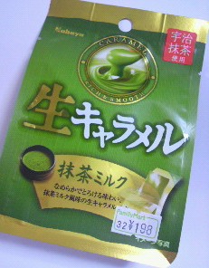 カバヤ 生キャラメル(抹茶ミルク)ファミマで見つけました★ 値段は198円 これ、私の行ったファミマでは残り1個だったんです。 人気あるっぽーいでも確かに食べてみて納得。 なめらか~で抹茶の味も濃くて美味しいです。コレ(個包装のパッケージがおもしろいです。ペリペリ~っと!) 何かの味に似てる・・・と思ったら、 アイスの、スーパーカップ抹茶に似てるようなそう思った人いません!? 私だけかな? でもこの生キャラメル抹茶ミルクはオススメしたいです