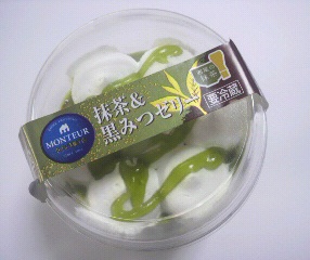 モンテール 抹茶&黒みつゼリー今月は、モンテールの新商品に抹茶モノが出てますね(*゜∀゜) 値段は、スーパーで176円(定価は189円)モンテールのサイトを見て、 本当は、一番美味しそうだと思った「抹茶のモンブランプリン」を購入したかったんですけど、 私の行ったスーパーにはこれしかなかったのです。 (私・・・黒みつ得意じゃないけど) 上から見たホイップクリームの感じが美味しそうだったので買ってみました。 思った以上に黒みつゼリーが大部分を占拠してます抹茶も好きで、黒みつも好きな方なら完璧ですねコレは。 黒みつの主張が強いので、黒みつゼリーだけを食べると私には「・・・」なんですけど、 上の抹茶ソースとホイップクリームを一緒に食べた時は本当に美味しいだから、もうちょっとホイップクリームを増やしてほしかったな~。 また今度違うモンテールの抹茶スイーツを買いたいと思います♪
