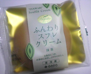 ふんわりスフレクリーム 抹茶***更新遅くなってごめんなさい。風邪でダウンしていました*** これは、具合の悪い私に彼が買ってきてくれたもの☆ 値段は不明 どうやらスーパーの九州物産コーナーで購入した模様。 抹茶の生どらみたいな感じだね! 食べてみると、生地も抹茶クリームもどっちもふんわり甘すぎなくて美味しい~まったくクセもなく、軽いので、 あっという間に2つ平らげてしまいました