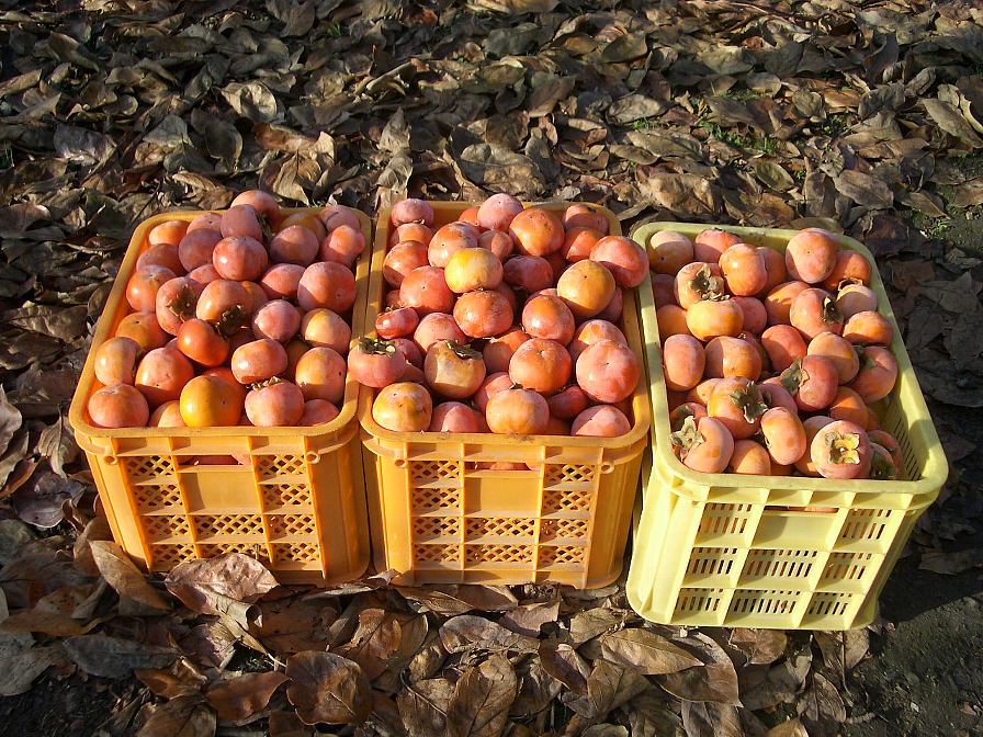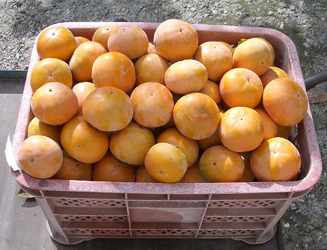 柿の収穫作業が今日で終了しました。今年は柿の大豊作でしたが1週間前の急激な冷え込みで柿が凍傷に罹り商品にならないため大量に廃棄しました。 (廃棄前の柿の一部)(冷凍に罹った柿の皮を剥いたもの:部分的に赤くなっている) 我家も道路の関係で、柿の栽培は今年で最終となり。これから50年近く育てた柿の木は自らが伐採に掛かる予定をしています。 仕方が無いとは言え寂しさがこみ上げてきます。(収穫を終えた柿畑 この柿の木を伐採)