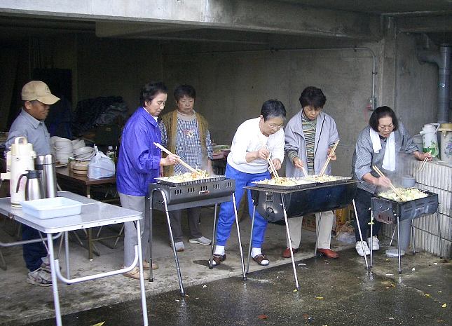 芋掘り会を始めて第5回を迎えた。春の桜を見る会を含め年2回、町内の方々が集いわいわいがやがやと楽しんできたが今回で最後になる。 理由は桜の大木が有り芋を植えられる広場が高速道路建設の関係で無くなるからだ。当日は生憎の雨で有ったが、近所の家のガレージをお借りしてビールと焼きそばで歓談した。 貴重な近所の交流の場が無くなるのは寂しい限りである。(芋掘り会の焼きそばの用意)(今年の春の花見)