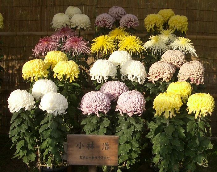京都府物園と西本願寺の菊花展に行って来た。昔々、お父さんは大菊作りにのめり込んでいました。台風のシーズンになれば会社を早退して風除けを。菊花展で審査の時期が来ると鉢の交換に大童。 京都植物園や西本願寺に出展して入賞した事も有るが、菊作りの限界を感じて止めてしまった。 しかし、今も菊のシーズンが来ると「心ワクワク」で菊花展に馳せ参じる。 菊愛好家の丹精込めた作品を是非鑑賞して下さい。(大菊花壇 今も現役の小林さんの作品)(盆栽仕立て菊)(懸崖)(京都の名花嵯峨菊)(福助作り)(千本作り)