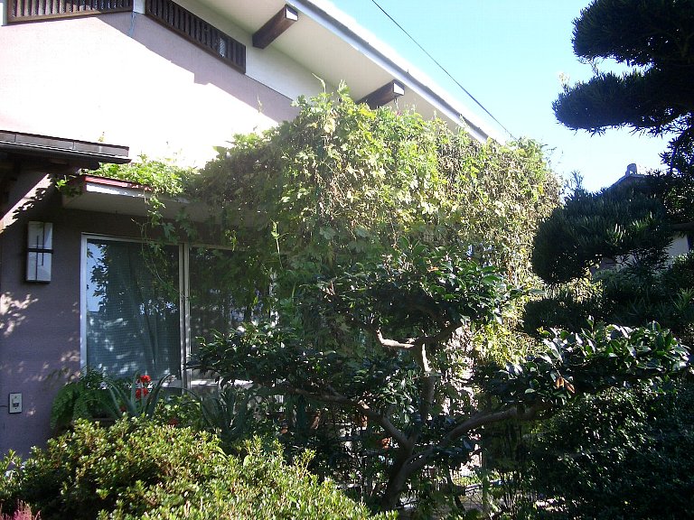 暑い夏中、エコ日除けとし、且つ我家の惣菜の材料として活躍くれたゴーヤの棚が秋を向かえてみすぼらしくなったため、引退願うこととした。 長い間、お疲れさんでした。(整理前のゴーヤ棚)(整理後のゴーヤ棚)