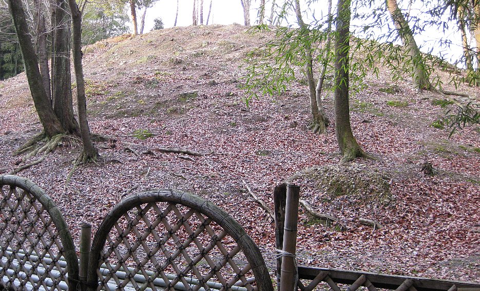 今朝は早く目が覚めたので遠出の散歩に出掛けた。 上里の近くには古墳が点在している。その一つが竹薮に囲まれた「寺戸大塚古墳」である。 この古墳は「現在は竹薮の土入れのため前方部の大半が失われているが向日丘陵に残る数少ない前期古墳として大変貴重なもので有る」との看板が掲げられていた。(今も発掘調査中で柵で囲まれ近くまでは行けなかった) 京都は筍の産地として品質が良く高価?なので有名である。京都の筍は色の白いアクの少ない筍を栽培・採取するため一月から二月に掛けて藪一面に土入れをする。収穫時期の三月~四月になると、土入れされた藪は雨で叩かれて表面がなだらかにになり地下から筍が出る直前に表面が小さく割れる、ので、これを目印に特殊な鍬で掘り出す。 筍の成長が早いためと、筍が日光に当たると黒くなるので毎朝朝の暗いうちから収穫し料亭や朝市に出荷される。(土入れされた竹薮)(土取場 )