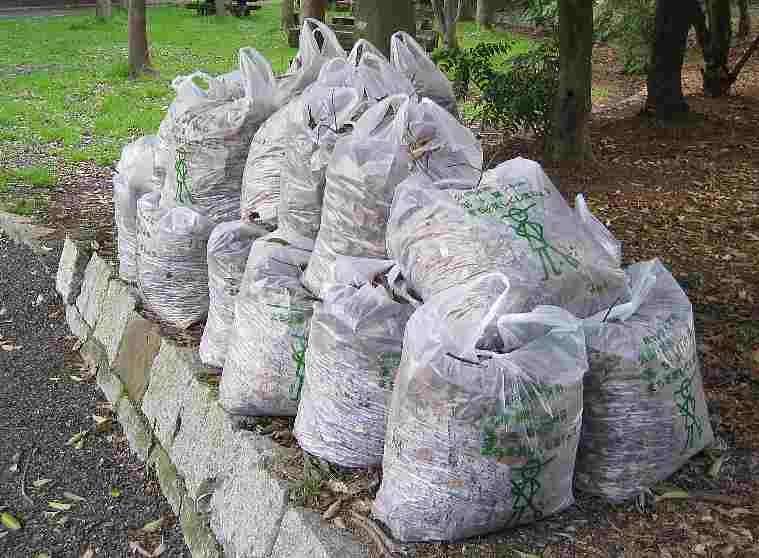 朝 散歩する小畑川沿いの中央公園でボランティアさん達の集めたゴミ袋を見た。 公園以外でも道路や川のゴミを拾っておられる人を見ると「素晴らしい私もと」思うのだが、集めたゴミを「有料の袋に入れて」までと躊躇する。 ボランティアさん達の集て集積された袋には「ボランティア用」と印刷されていた。多分、グループで公園の落ち葉拾い等で集めたゴミは無償で廃棄できる袋が配布されているのであろう。 グループに参加してない小生は自宅から袋を用意して、公園で落ち葉を集めて持ち帰る一人ボランティアに初めて参加した。 しかし、一人ボランティア!!と言うより、家庭菜園用の腐葉土作りが目的に近いのだが!!。