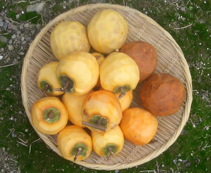 10月20日の本ブログ「一足早い晩秋風景」で一足早い干し柿風景を紹介しました。駄目元で初挑戦したものだが予想通り失敗。 虫は飛んで来るは柿は腐ってしまうは。やはり気温が高かったのでしょう。 日記を紐解くと昨年は12月9日に開始し。甘柿の干し柿も成功と有る。 今年の柿は豊作で渋柿の実がなりすぎて枝が折れてしまった。そこで未だ例年よりも一ヶ月以上早いが棄てるのも忍びないと、甘柿も加え3種の柿で二回目の干し柿に挑戦した。結果は如何に!!(干し柿)