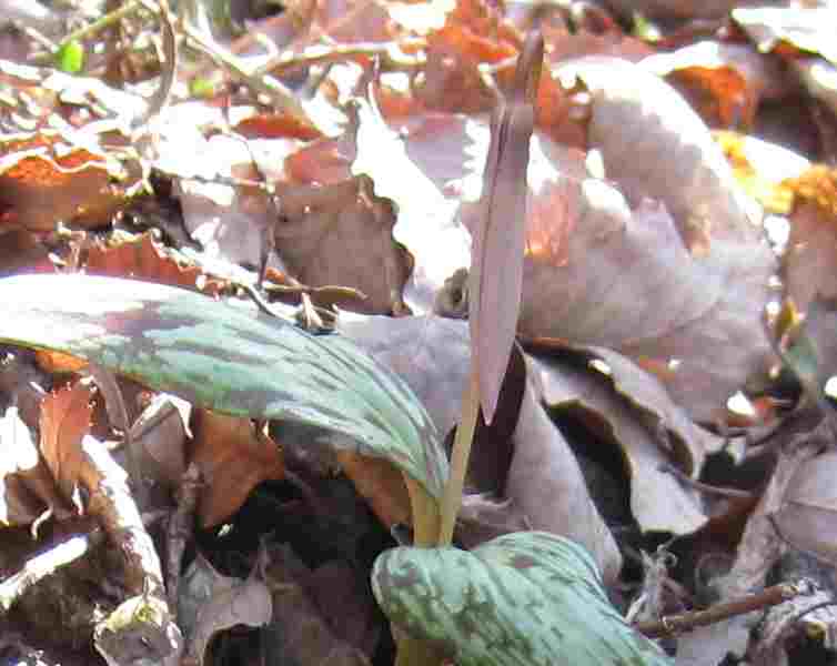 旧の家の裏山の大暑山には2箇所のカタクリの群生地が在る。 今年は櫻の開花も早い事らカタクリの花の開花も早いだろうと3月30日の午後に山登りをした。 群生地のカタクリは未だ蕾も固く、多くは土の下で暖かくなるのを待っている様で本数も少なかった。 この地には破れ傘やエンレイ草・二輪草が見られるがこれらも土の下で姿さえ見られなかった。 4月10日頃になれば、土の下で待機しているカタクリも地上に顔を出し、可憐な花も咲いて私達を迎えてくれるだろう。 そこで、カタクリ花の愛好家を募って「花見登山」でもと思っている。(破れ傘 2008年4月13日写す)