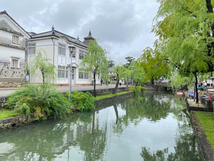 岡山県倉敷へ旅行へ行ってきました(^^)/今回は車旅ではなく、電車の旅。新幹線で岡山まで行き、山陽本線に乗り換えて倉敷へオレンジ色の4両編成の電車が可愛らしいです。帰りの電車の中で気が付いたんですけど”津波が来たときの注意事項”というのが電車内に貼ってあるのに気づいてびっくり!そうだよね、海が近いからだよね。さて、今回は雨予報だということで一眼カメラを持参していくのはやめ写真は全部スマホ撮りです。こういうとき、小さなコンパクトカメラがあればいいんですけど(^^;)荷物はホテルに預け、倉敷の町を早速散策で~す♪倉敷は初めて~。見る景色がすべて新鮮!そして、インスタなどで見かける川のこの景色を見ることができました。この倉敷川がある一帯を『美観地区』って言うんですよ。ここ美観地区は、寛永19年に幕府の直轄地になりのちに代官所も設けられたそうです。現在に残る建物は、その時代の豪商の商家の原型が多く明治時代に入ってから洋風の建物が増えていったそうです。赤レンガとアイビーの蔦も美しい~~。この赤レンガと蔦の建物は、『倉敷アイビースクエア』と言い陶芸体験があったりホテルなどの複合施設です。そして倉敷は、国産ジーンズの発祥の地だそうであちこちにジーンズショップがたくさんあるんです。でもお値段がちょっとお高くて~(;^_^Aジーンズが似合うんでしたらいいんですけど私、扁平尻ですから似合わないんですwあ、でも普段はよく履きますよ。ジーンズのほかにデニム製品も多く売られてます。お好きな方にとっては嬉しい場所ですね。ジーンズが有名ということで、青にこだわった物も!青い肉まんとか青いソフトクリームとか。私はこれは食べませんでしたけど、今回の旅はちょこちょこ色々食べました。それはまた次回にでもお話ししますね。10月だというのに、まだまだ暑くて💦雨上がりのこの日は雨に降られることはなかったけれど蒸し暑くてたまらない1日となりました。つづく。