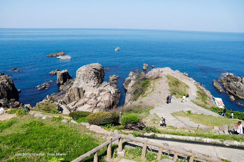 刑事に追い詰められた犯人。「××××だな。」「く、来るなー!」昭和の代表的ドラマ。古いなぁ~(;^_^Aここはその懐かしいドラマ撮影が行われてた場所『東尋坊』です。約1キロにも及ぶ柱状節理は、世界三大奇勝に選ばれてます。柵がないから崖っぷちまで歩いて行けちゃうんですけど落ちたら自己責任!あとで知ったんですけど、私達が訪れた前の日70代の方が落ちて亡くなったそうです(゚Д゚;)日本の夕陽百選にも選ばれてるので夕方に訪れるのはいいかもしれませんけど決して夜だけはやめておいたほうがいいかもしれませんね。真っ暗になりますし、得体のしれない白い手があなたの足首を掴んで引きずり落とすかもしれないです(/・ω・)/ポイッ恐ろしや~~~~長かったGWもやっと終わって、やっと落ち着いてPCの前に座って旅の思い出を振り返ってみる。今回の福井の旅、初めての土地はやっぱり面白かったです。そうそう、お泊りしたホテルもまた良かった!まつや千千『時忘れ離座』という8部屋しかない露天風呂付きのとこに贅沢にもお泊り。うちのダンナさん、大浴場が苦手な人なもんだからあ、別に背中にモンモンしょってるわけじゃないですよ(^^;)こういう露天風呂付のお部屋があるとありがたいです。私は大浴場の方も入らせて頂きましたけど良かったわぁ♪8部屋しかない特別室だからスタッフの丁寧なもてなしもすごくよかったです。何故か名札が全員下のお名前が書かれているの。だからスタッフ同士呼び合うときも下のお名前なんですよ。私達の担当のスタッフさんは”あきらさん”と仰ってこの『時忘れ離座』担当のスタッフさんのようです。女性のお客さんには特別に浴衣が用意されしかも可愛らしい巾着のお土産付きヽ(^o^)丿好きな柄が選べます。ご飯も美味しかったなぁ。”へしこ”って初めて食べたけど美味だったし~ここのホテルの料理長が考えたという最中の中にクリームチーズとへしこが入ったのが本当に美味でした♪スタッフ手作りの箸入れに入ったお箸もお土産として頂いたし(*^^*)朝の6時半にホテルの1階で朝いちが開催されてて福井名産の物がずらりと並んでそれを買うのも楽しかったなぁ。とまあ、5月の旅行はお天気にも恵まれ満足のいく旅となりましたヾ(≧▽≦)ノ