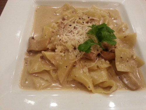 帰り道、帰宅ラッシュも落ち着いた時間帯だったのですが、たまたま電車が遅れていたそうで、車内は混雑しておりました。降りる人の為に一旦ホームに降りたら、凄い数の人がホームで待っていて、まさかの満員電車状態になっていくのを、一時的に降りただけのはずのホームから見送る事になりました。そうです、あんまり混んでいるので、乗り込む気力が失せました(笑)そのまま次の電車を待っても良かったのですが、せっかくなのでその駅で降りて夕飯を食べる事にしました。そんな訳で、降りる予定の無かった飯田橋で夕飯です。何度か来た事のあった生パスタのお店に、久し振りに行ってみました。「ポルチーニとエリンギのクリーム」幅の広いパスタ「パッパルデッレ」です。とっても美味しいですよ(^.^)bim bum bam primo(ビンブンバンプリモ)というお店です。カジュアルイタリアン風だけど実はパスタハウスって所でしょうか。美味しい生パスタがリーズナブルに頂けます。製麺会社が経営しているレストランなんだとか。ここはパスタ以外も美味しいので、ワインも頂いちゃいます。レバーペーストをつまみに一杯やるのがお気に入り(^^♪また来よう(^^)vお子様にも安心のレバー製品。クラッカーやパンに添えてお召し上がりください。レバーペースト価格:630円(税込、送料別)もっと美味しく、さらにソースのようにレ・バーニャ 100g価格:3,250円(税込、送料別)ポチっとして頂けると、ていいちが( ̄ー ̄)ニヤリッとします。にほんブログ村東日本大震災の被災者義援金受付(楽天クラッチ募金)募集期間は2011年10月1日~2013年4月10日です。