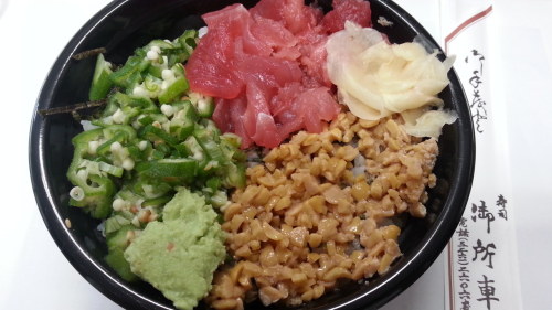 子供の頃から納豆が好きでよく食べていましたが、結婚してからは食べる機会が減りました。妻は西日本出身で、納豆が苦手です。臭いがダメなので、我が家では納豆が禁止です(^_^;)最近少し食事の内容を見直していて、揚げ物を食べる量をかなり減らしているのですが、今日のランチはたまたま事務所で一人きりだったので、よし!納豆を食べようと思いたちました。ランチで納豆というとコンビニで納豆巻きがお手軽ですが、コンビニよりはお寿司屋だな、ということでこちらを購入。近くのお持ち帰り寿司屋さんで「ねばねば丼」を購入しました。具材はマグロとオクラと納豆です。ご飯の量が多くてダイエットにはなっていないかもしれないですが、揚げ物や脂たっぷりのお肉よりは軽くていいでしょう。我が家で禁止の納豆ですが、じゃあオフィスならいいのか?というのははなはだ疑問ではあります(^^ゞ【三番蔵・着物裏地】正絹 本格京友禅 ワンポイント柄八掛 当店オリジナル 一点物 御所車柄 雄黄色【あす楽】【送料無料】価格:21,000円(税込、送料込)ポチっとして頂けると、ていいちが( ̄ー ̄)ニヤリッとします。にほんブログ村