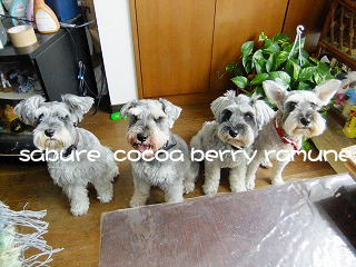 私とRB・らむねは私の実家へ夫とKPは夫の実家へと今年は急遽別行動実家近くに住む妹がドイツに旅行中のため実家にらむね一家が集合かわいいけど・・・・4匹はたいへん・・・・ すばやくて私が・・・僕が・・・・と前に出たがるのがさぶれとココアパパ 比較的控えめならむねとベリーを連れて三重県にある御在所岳に ロープウェイもリフトもわんこOKロープウェイで景色をながめるベリーさぶれとそっくり~~姉妹だから当然だけどRBの背中でおとなしく・・・らむねは100円でキャリーを借りましたリフトはゲージに入れなくてもリフトは2回目なので余裕のらむねロープウェイでは震っていましたが・・・・ 頂上到着冬はスキー場になるので下界よりは涼しくて快適~~母だけでは3匹はたいへんなので私たちが帰るときには妹の夫がベリーとココアを迎えに来ました。 お寿司・うなぎ・ラーメン・・・・とおいしいものをたくさん食べたし~~お墓にも行ったし~~シュナにも囲まれて充実した日々でした おみやげに作って行った抹茶ゼリー簡単でおいしい~~ でももうどこにもゼリー袋が売ってない・・・残念