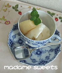 今日も朝から暑いもう暑いのいいです暑い日のおやつはアイス今日は大好きな桃のコンポートをつかった桃のシャベート生クリームの入るのでアイスとシャベートの間のような感じかな生クリームを入れることで途中の撹拌が足りなくてもがりがり感が少なくおいしい~~ 桃シャーベットコンポート添え 毎年作っているけどレシピを変更したのでメモ代わりに・・・ ・ヨーグルト 1.5カップ・生クリーム半カップ(1カップずつでもOK)・砂糖100g・桃のコンポート(桃半コ~1個)1.生クリームは5分立てにする。残りの材料を入れてFPでガァ~と混ぜる。2. 途中で2~3回混ぜるとなめらかになる。 私は冷凍庫の中で撹拌しながら冷やすというタイプのアイスクリームメーカーで作っていますでもね・・・・いつも冷凍庫がいっぱいで入る隙間がないのよね~~甘さも調節できるし~さっぱりしていておいしい~~また桃買いに行こう