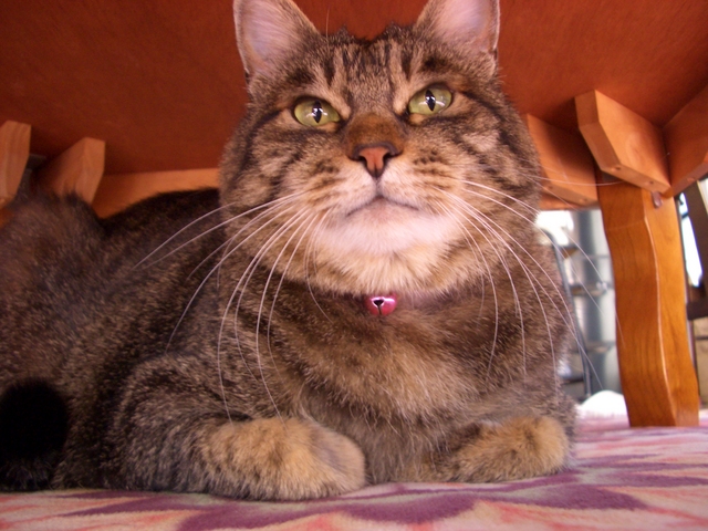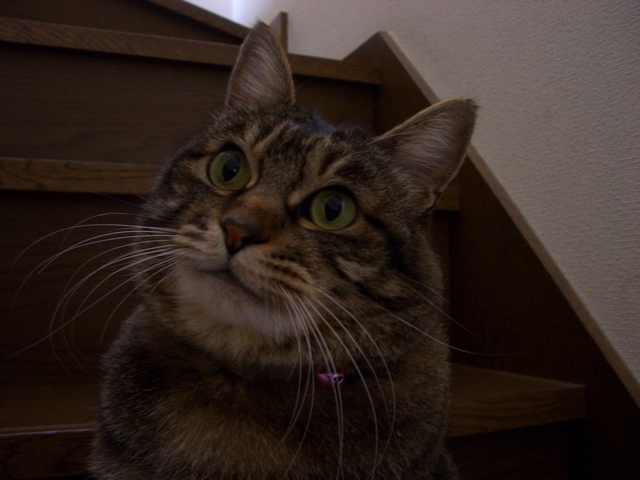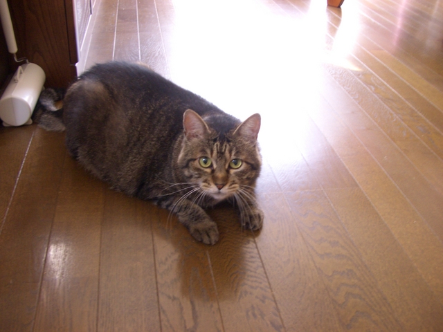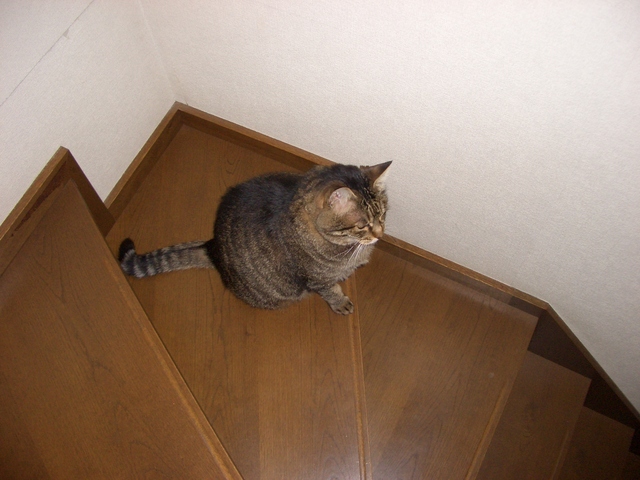 「我が家のラムちゃん過去倉庫【4】」は、「我が家のラムちゃん」http://happy.ap.teacup.com/ramchan/ で紹介した 過去の記事をUPしています。最新のラムちゃんの様子は「我が家のラムちゃん」で、更新しています。「我が家のラムちゃん」の方にも、遊びに来て下さいね! "(*^^)/2008/8/7の記事です。 ラムちゃんは 決められた所以外では、 爪研ぎをしない お利口さんです。 その場所は 階段を登った所です。 動画は ココをクリックしてね! 1日に何度も、 軽やかに 階段の登り降りしています。 駆け降りて行く時、 大きなおちりを 左右に 大きくフリフリ振って、 降りていく様子が 可愛かったのですが、 いつ頃からだったかは、 ハッキリ覚えていないのですが、 降りていく後姿が、 ひと回り小さくなった様に感じます。 得に おちりが小さくなった様で チョッと残念です。 そして。。。 階段の上から2段目の所が、 ラムちゃんの場所です。 ココが 好き~ 毎年 夏になると この場所で お昼寝したり・寛いだりしているのですが、 今年は、 一度も寝ている所を 見た事が有りません。 今年は 階段が涼しくないのかな~? 風の通りが 悪いのかな~? チョッと 不思議なんです。 久しぶりに ラムちゃんの体重を量ってみました。 「少しは 痩せているかなぁ~?」 「ひと回り 小さくなってるから 減ってるかな~?」 と期待しながら 量ってみました。 。。。が! 「6.7キロ!」で変化なし! まぁっ!増えてないから OK!でしょうか? やっぱり 目の錯覚だったのかなぁ~??? でも。。。見た目は小さくなってるんだけどなぁ~??? ウゥ~~ン! やっぱり変わってないかぁ~! クリックして頂けると 嬉しいです。o(*゚▽゚*)o 人気blogランキングへ (=^‥^)/。・:*:・゚,。・:*:・゚ ありがとうございました。