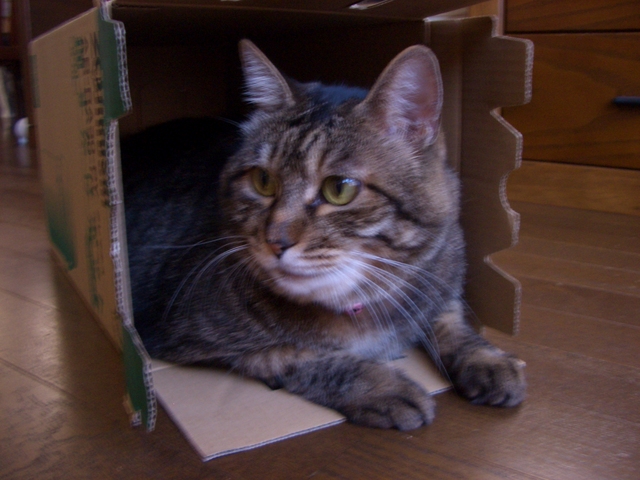 「我が家のラムちゃん過去倉庫【4】」は、「我が家のラムちゃん」http://happy.ap.teacup.com/ramchan/ で紹介した 過去の記事をUPしています。最新のラムちゃんの様子は「我が家のラムちゃん」で、更新しています。「我が家のラムちゃん」の方にも、遊びに来て下さいね! "(*^^)/2008/9/7の記事です。 猫って、 箱を見ると 必ず入ります。 ラムちゃんも 箱が大好きで、 その箱が 大きくても・小さくても、 必ず一度は トライするから面白いです。(*゚▽゚*) 今回 ラムちゃんが トライした箱は、 「ポットの空き箱」です。 居心地が良い様で 落ち着いてます。 グゥ~ですよぉ~! ※ ピンボケで ごめんねっ!(o*。_。)oペコッ ゆったり寛いでるこの箱は、 ラムちゃんには 少し小さかった様で、 中に入っても 方向変換が出来ませんでした。 なので、 お尻の方から入る様に 手助けしたのですが、 猫って、 後退りで 入る事はしないですよね。 ラムちゃんだけかな~? 他の猫ちゃんは 出来るのかな~? もう少し 大きい箱が 良かったですぅ~ 昔から「電気ポット」より、 手間が掛かっても やかんでお湯を沸かし、 「保温ポット」で 保温する方が好きです。 今回 長年 使っていた「保温ポット」が 壊れてしまい 買い換えたのですが、 「保温ポット」の種類が 少なくて 少し寂しい気がしました。(*´ο`*) 皆さんは どっち派ですか~? クリックして頂けると 嬉しいです。o(*゚▽゚*)o 人気blogランキングへ (=^‥^)/。・:*:・゚,。・:*:・゚ ありがとうございました。