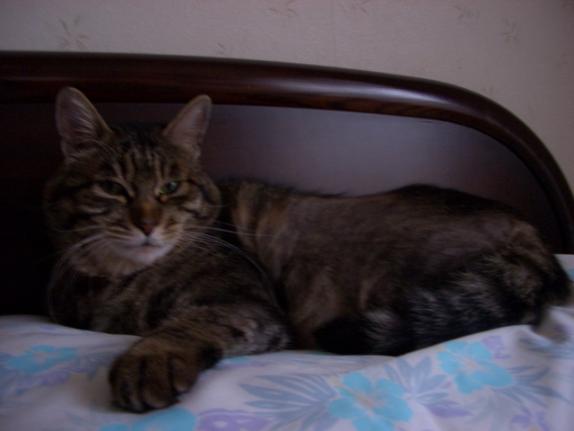 「我が家のラムちゃん過去倉庫【4】」は、「我が家のラムちゃん」http://happy.ap.teacup.com/ramchan/ で紹介した 過去の記事をUPしています。最新のラムちゃんの様子は「我が家のラムちゃん」で、更新しています。「我が家のラムちゃん」の方にも、遊びに来て下さいね! "(*^^)/2008/6/29の記事です。 ラムちゃんの朝は、 目覚まし時計の音で 目覚めます。 ※ 目覚まし時計が鳴るまでは、 大人しく寝てくれるので 助かってます。 ※ 長く成りますが 読んで下さると嬉しいです。 でも。。。 起きると「ニャ~!ニャ~!」煩いです。 「おはよう~!」 「お腹空いたよぉ~!」 「ご飯は~?」と言っているのかな~? 軽く 朝ご飯(カリカリ)を食べ、 トイレで ちっこして 又カリカリを食べ・・・ 晴れの日は 洗濯物を干してる間 お外でウォッチングを 楽しむのですが・・・ 今日は あいにくの雨です。 窓越しに 外ウォッチングを楽しんだり・・・ 毛繕いをしたり・・・ フローリングの上で ゴロン!ゴロン!したり・・・ 存在感を 100%出して、 まったりと 寛いでいたのですが。。。 家事が 一段落した頃には、 ラムちゃんの姿は 消えてました。(^m^*)ムフっ 何処に居るかと 言うと。。。 もちろん「私の枕の上」です。('ω'*)アハ♪ 今日は、 午前10時頃~午後4時頃まで、 お昼ご飯も 食べないで。。。 「枕の上」で、 ボォ~としたり・・・ お昼寝したり・・・ まったりと 寛いでいた様です。(*´-ω-`)ふぅぅ こんな感じで。。。ふぅぅ♪((*゚゚∀゚゚*)) のんびりと。。。 まったりと。。。 寛いで。。。 (=^. .^=)ミャ~ ねむい~(*´ο)ゞ トロォ~ン!(∪。∪)。。。 。o.゚。(*′O`)。o.゚。ふぁあぁぁ~ (∪。∪)。。。スヤスヤ (。-ω-)zzz. . . 午後4時頃、 遅めの お昼ご飯(カリカリ)を食べ・・・ トイレで ちっこしたら・・・ 又「枕の上」へGO! そして午後6時半頃、 起きて来て・・・ 家族の傍で まったりと寛ぎ・・・ 午後8時頃、 遅めの夕ご飯(カリカリ)を食べ・・・ 只今 午後11時45分、 もう既に「枕の上」で熟睡しながら・・・ 私が寝に来るのを 待ってます。(*゚ー゚*) 雨の日は 只ひたすら。。。 「私の枕の上」で過ごしてる ラムちゃん! ラムちゃんが居る事を 忘れてしまいそうに 成るぐらい・・・ 存在感を 消している ラムちゃん! これで良いのでしょうか~(^m^*)ムフっ 「只ひたすら寝る」が 良いんだよね! 最後まで 読んで下さって "(*^^)/。・:*:・゜ありがとうございました! クリックして頂けると 嬉しいです。o(*゚▽゚*)o 人気blogランキングへ (=^‥^)/。・:*:・゚,。・:*:・゚ ありがとうございました。