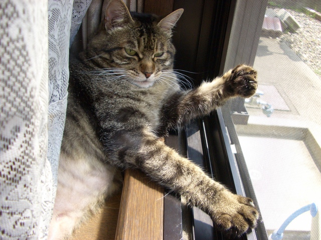 「我が家のラムちゃん過去倉庫【4】」は、「我が家のラムちゃん」http://happy.ap.teacup.com/ramchan/ で紹介した 過去の記事をUPしています。最新のラムちゃんの様子は「我が家のラムちゃん」で、更新しています。「我が家のラムちゃん」の方にも、遊びに来て下さいね! "(*^^)/2008/6/21の記事です。 本来なら朝から 雨が降るはずだったのですが、 嬉しい事に うす曇でした。 「何時頃から 雨が降り出すのかなぁ~?」と思い、 インターネットで これからの雨雲の様子を調べると、 お昼過ぎまでは 雨が降らないとの事、 嬉しい事に 午前中は 晴れ間も見れ、 陽射しも 家の中に入って来ました。"(*^^)/ ラムちゃんも、 貴重な陽射しを 見逃す事なく、 気持ちよく お日様と仲良くしていました。 もちろん! 大好きな「おっぴろげポーズ」で リラックスです。(=^. .^=)ミャー 敷居を枕にして。。。 お手手を ペロペロして。。。 頭寒足熱! ピ~ンと伸ばした足が好き~ そして天気予報どおり、 午後から 雨が振り出しました。 まだまだ。。。 ジトジトの梅雨は 続きそうです。 クリックして頂けると 嬉しいです。o(*゚▽゚*)o 人気blogランキングへ (=^‥^)/。・:*:・゚,。・:*:・゚ ありがとうございました。