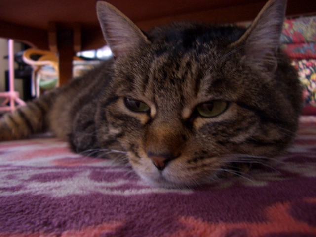 「我が家のラムちゃん過去倉庫【4】」は、「我が家のラムちゃん」http://happy.ap.teacup.com/ramchan/ で紹介した 過去の記事をUPしています。最新のラムちゃんの様子は「我が家のラムちゃん」で、更新しています。「我が家のラムちゃん」の方にも、遊びに来て下さいね! "(*^^)/2008/4/10の記事です。 昨夜から雨が降り 今日は 少し寒いです。 ここ数日 暖かい日が続いて 昼間は 暖房いらずだったのですが、 今日は ホットカーペットが 大活躍です。 ラムちゃんも 朝から ずぅ~と ホットカーペット大好き猫に 成ってます。 ラムちゃんが 見当たらない時、 一番最初に 確認する場所は 机の下です。 机の下で 寛げるのは ラムちゃんだけです。 利点は。。。 (1)誰にも邪魔されない! (2)間違って 踏まれる事もない! だから机の下は ラムちゃんが マッタリ寛げる 大好きな定位置です。 香箱座りが。。。 好き~(∪。∪) チュッ お手手も。。。 カワ(@゚∀゚)ィィ---!!! プックリお腹も。。。(* ̄m ̄)プッ 大好き~ (^▽^*)~LOVE 私も一緒に マッタリしたいけど。。。 チョッと 狭いよねぇ~('ω'*)アハ♪ クリックして頂けると 嬉しいです。o(*゚▽゚*)o 人気blogランキングへ (=^‥^)/。・:*:・゚,。・:*:・゚ ありがとうございました。