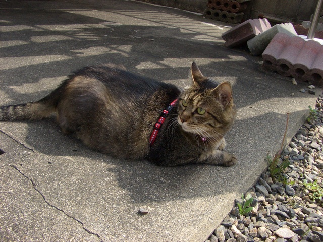 「我が家のラムちゃん過去倉庫【4】」は、「我が家のラムちゃん」http://happy.ap.teacup.com/ramchan/ で紹介した 過去の記事をUPしています。最新のラムちゃんの様子は「我が家のラムちゃん」で、更新しています。「我が家のラムちゃん」の方にも、遊びに来て下さいね! "(*^^)/2008/5/7の記事です。 ゴールデンウィーク中の ラムちゃんの様子です。 門扉の所の「つつじ」が 綺麗に咲いたので 写真を撮ってたら。。。 お庭で 日向ぼっこしていた ラムちゃんも、 勇気を出して 門扉の外へ 出て来ました。 周りを気にしながら。。。 ビクビク ビビリながら。。。 駐車場まで 出て来ました。 ビビッてますぅ~ 周りを 気にしてますぅ~ 「つつじ」の傍で 写真を撮りたかったのですが、 なかなかジッと してくれません。(´ω`*) そして お隣の掃除機の音に ビックリして 家の中へ 逃げ帰ってしまいました。('ω'*)アハ♪ 勇気を出した冒険も 数秒で終わり。。。 まだまだ 「ビビリ猫」を 返上出来ない ラムちゃんでした。(゚m゚*)プッ クリックして頂けると 嬉しいです。o(*゚▽゚*)o 人気blogランキングへ (=^‥^)/。・:*:・゚,。・:*:・゚ ありがとうございました。