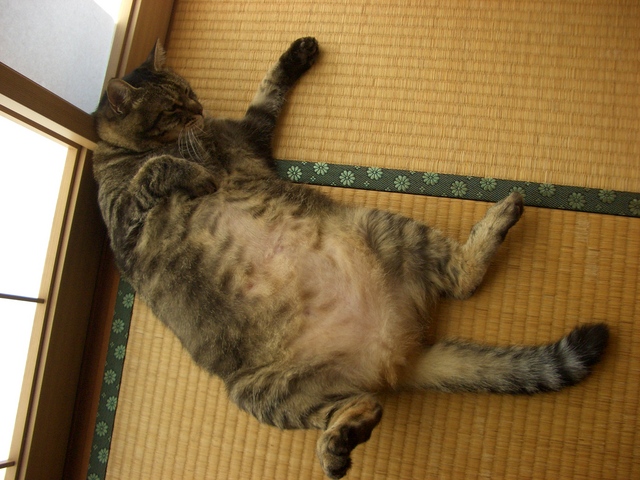 「我が家のラムちゃん過去倉庫【4】」は、「我が家のラムちゃん」http://happy.ap.teacup.com/ramchan/ で紹介した 過去の記事をUPしています。最新のラムちゃんの様子は「我が家のラムちゃん」で、更新しています。「我が家のラムちゃん」の方にも、遊びに来て下さいね! "(*^^)/2008/10/21の記事です。 澄みきった青空! 爽やかな秋晴れ! 陽射しは 少し暑いのですが、 とっても いいお天気です! 朝から お外で、 まったりしていた ラムちゃんも、 陽射しを いっぱい浴びて とっても気持ち良さそうでした。ヾ(@^▽^@)ノ 思う存分 日向ぼっこをした後は、 和室で まったりと 寛いでいました。 ラムちゃんも、 畳の自然な温かさが 気持ち良いみたい。。。 デェ~ンと おっぴろげポーズ! お見事ですぅ~!(゚m゚*)プッ お手手を 揃えて! まったりと。。。 カメラ目線で 固まってます。('ω'*)アハ♪ イヤ━━━━━(*゚∀゚*)━━━━━ン!!!! 怒った~? このまま お昼寝の邪魔をしていると、 ムッ!と されそうなので。。。 私は 退散しました。(^^ゞ ラムちゃん、良い夢 見てねっ! ~(=^‥^)ノ おやすみニャ。 クリックして頂けると 嬉しいです。o(*゚▽゚*)o 人気blogランキングへ (=^‥^)/。・:*:・゚,。・:*:・゚ ありがとうございました。