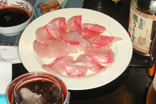 土曜日は、常連さんの結婚祝いで四日市のもも瀬へ。朝方の電車の遅れで、到着は夕方になってしまいました。私はフライングで、5時前から準備運動で焼酎をいただいていました。皆様が到着した頃には、エンジンも十分暖まっていました。本日のメインは、キンメダイのしゃぶしゃぶ。キンメダイの切り身。これがシャブシャブに。ブリシャブは何度かいただきましたが、キンメダイは初めて。そもそも、キンメダイ自体が、そうそうお目にかかれるものではありません。お頭も登場。この先、一生拝めないかも知れません。もちろん、一人で全部食べたわけではありません。久し振りの皆様といろいろ盛り上り、会の趣旨って何だったんだっけ?という感じでしたが、新婦さんとはいろいろ話が出来ました。金目鯛のしゃぶしゃぶセット