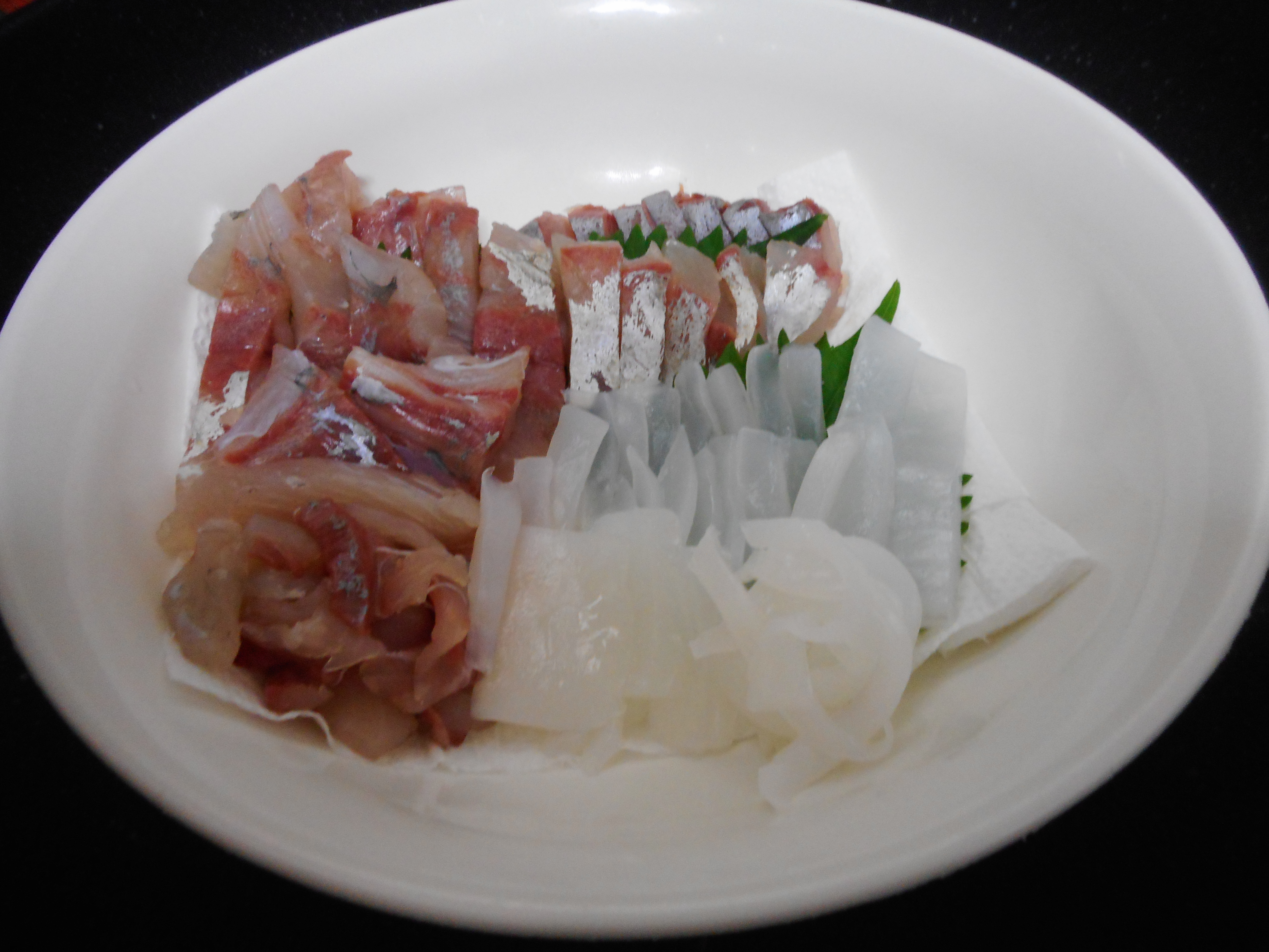 当初予定の三種盛りはできなかったけど、シオとアオリイカの2種盛り