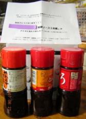 ちょうど1ヶ月前にあの有名なギター少年(山岸竜之介君)が地元の音楽祭に出演するというので見に行きましたその後 音楽祭の「ファンキャンペーン」ていうのがあって応募してたら「特製ソース3本組」が当たりました昨日宅配の人が配達してくれたけどすっかり忘れてたので最初何の事かわからずぼ~っとして荷物を受け取りました値段は高くはないけど当たりってうれしいですね主人も名前書いてたけど主人ははずれたみたいなので余計うれしいわ~