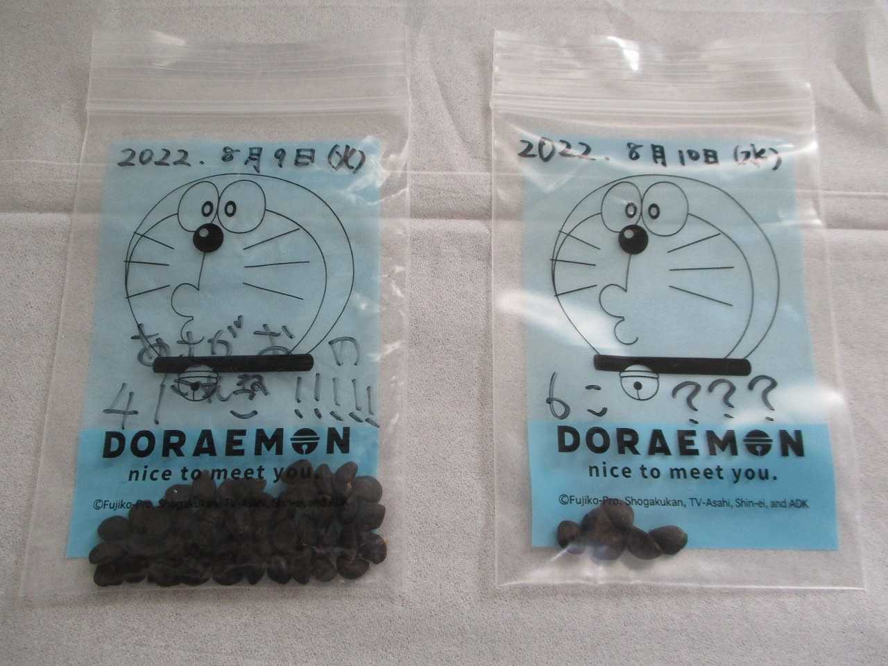 こちらは 息子 が小学校で育てていた 朝顔 から獲れたものです。