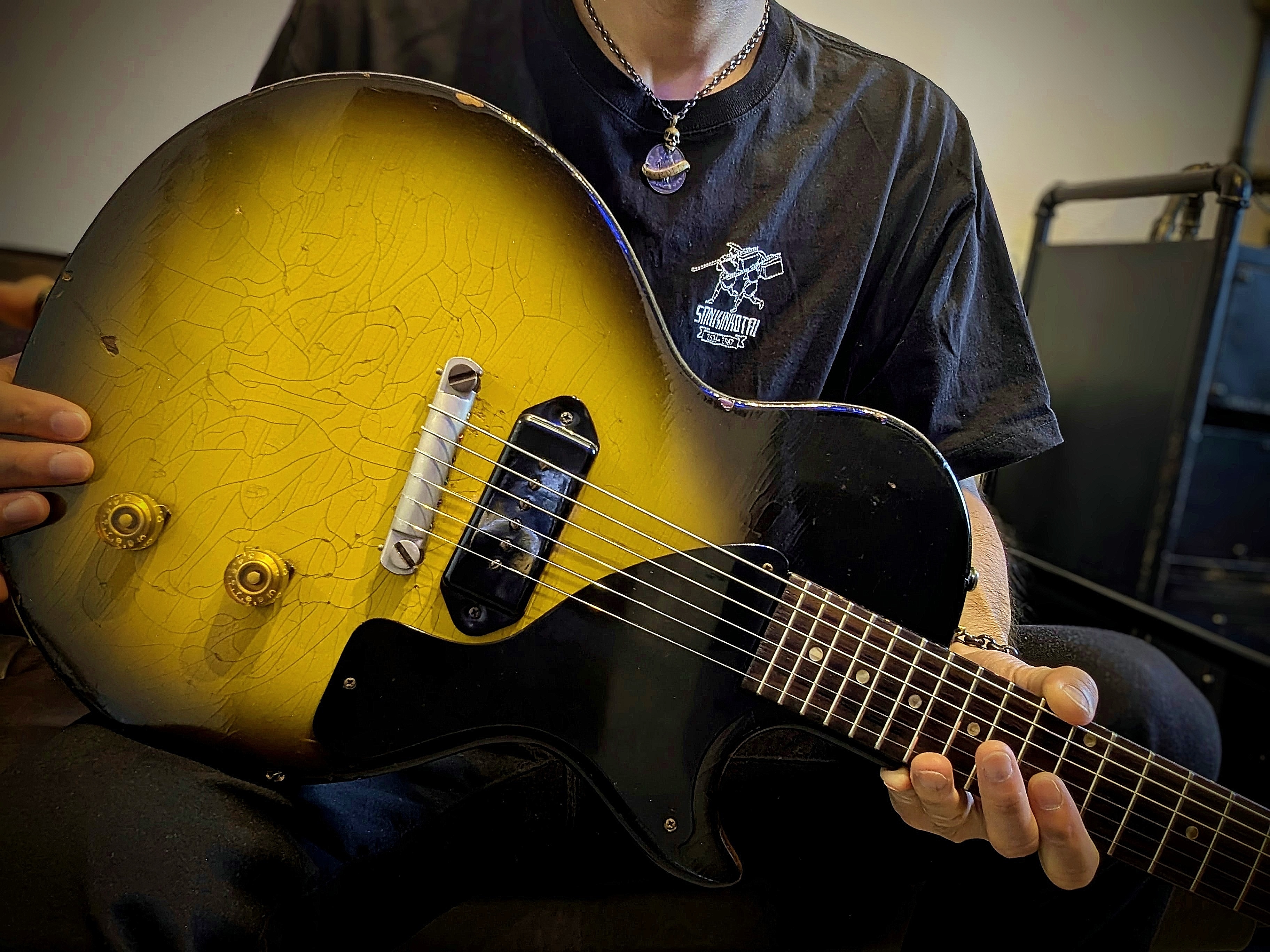 そんなレスポールジュニアですが、実はシングルカッタウェイのモデルは1955~1957年までで僅か3年しか作られておりません。半世紀以上経った今でも “1957リイシューモデル”として再発売される実態を踏まえると如何に後世に影響を与えた存在かが伺えます。その長い歳月を考えれば世界各国を渡り歩き、過去オーナーの熱い想いが詰まった遺品となっている可能性も高く、しかるべき運命の中で継承され、こうして自分の手元に存在していると思うと謎のロマンを感じずにはいれません。