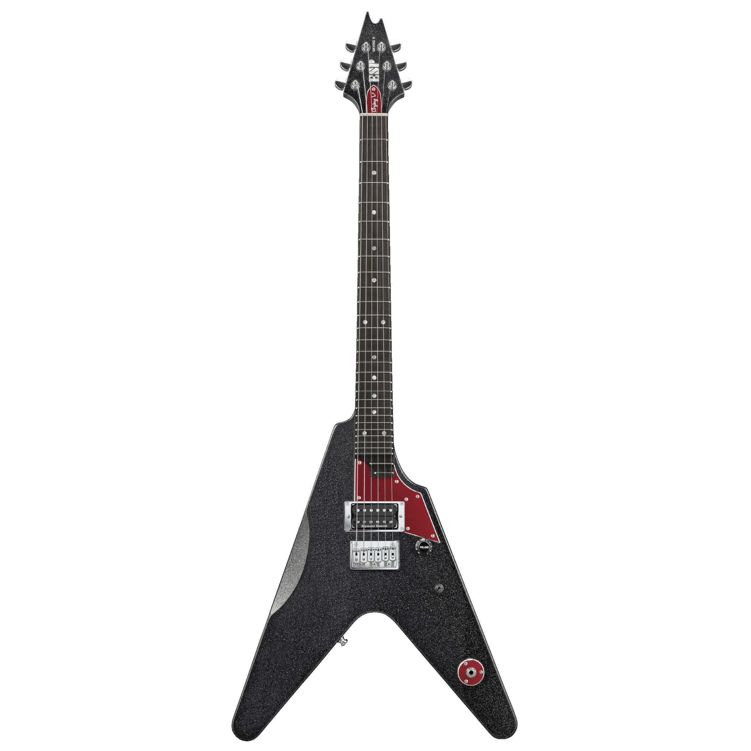 ネットサーフィンしていたとき、ふと目にしてしまったこのモデル。そしてここにあるということは購入済で手元にあるということになります(笑) 恐らく目にしていなかったら購入には至らなかったであろうこのモデル。何故かって・・・見て分かるだろ・・・めちゃくちゃ格好良い!!ESP CRYING V (Titan Metal) BODYHonduras Mahogany NECKHard Maple 3P FINGERBOARDRosewood, 31frets (29-31th at Scalloped) INLAYPearl Dot SCALE648mm NUTBone CONSTRUCTIONSet-neck TUNERGOTOH SG360-20 BRIDGEESP FIXED Bridge PICKUPSeymour Duncan SH-11 CONTROLSMaster Volume (w/Pull Direct Out Switch), Coil Split Switch COLORTitan Metal フライングVのタイプは基本的に座って弾くのが困難な為、購入は懸念していたのですが、何せこのルックスと仕様が求めていた完成形でした。 チタンメタルフレークにレッドカラーのアノダイズドピックガード、シングル・ハムバッカーにボリュームコントロールが1つ。シンプルの極み。ボディ材はホンジュラスマホガニー、ネックはハードメイプル、余計な配線が無い&ボディ質量が多いので野太い音を出しそうじゃねーか!ということで買っちゃいまして弾いてみました。まずボディが恐ろしく軽い。多分3kg中という感じ。音色がこれまた今までにない独特さがあって素晴らしい。マホガニー材は基本的に低中音域に優れ高域はマイルドとされていて、基本的にはレスポールの様にトップ材にメイプルをラミネートして高域とのバランスをとっているのですが、このモデルに関してはネックをメイプル材とし、鳴りとエッジを増幅してボディに伝えている印象。ネックもマホガニーであれば出ないであろうエッジやキレもズバッと出ますが、耳障りではない丸さと色気があってキンキンしません。ホンジュラスマホガニー故のボディ鳴りも素晴らしくマホガニーとは思えない音抜けです(アッシュ材なみ)シングル・ハムバッカーというのも男らしい。トーン切替は個人的にも感情表現として重要なのですが、シングル化することでボディ材を確保出来、それを補うだけの音の良さがあります。配線を複雑化しないことで劣化しないリアルな音、さらにこのモデルではダイレクトスイッチが装着され、ONにすることでピックアップへ直結状態となりさらにリアルな音が出せます。(音抜けとパワー、繊細さが3割増し)ボリュームノブはプッシュ/プルでコイルタップが可能で、見た目のシンプルさ以上に実用的かつ機能美に溢れております。ピックアップはセイモアダンカンの SH-11 CustomCustomを搭載。このピックアップ特性はアルニコ2マグネットを採用し、低中高音域が絶妙に調律されて全域が綺麗に鳴ります。ハードロックやヘヴィメタルを弾くには本来、低音域が若干弱いので不向きなのですがボディ材との特性とマッチして全域OK!バイト感もあってウォーム。エロい音です。 余談ですがこのピックアップは意外とレスポールにも相性が良いかもしれません。指板はローズウッド材で驚異の31フレット。ハイポジションが異様に弾き易い。最後の2フレットはスキャロップされていて1音刻み、ハイエンドらしい指板&フレットの処理も素晴らしいですね。ロングスケールですが薄すぎず太すぎずの絶妙な太さのネックとなっていて弾きやすくペグは信頼のゴトー製、ナットは牛骨。これだけ派手な外観ですが質実剛健仕様でアームレス。ソリッドブラス削り出しのESPオリジナル FIXED BRIDGEを採用。名機FLICKER-Ⅲ(高崎晃の愛用で有名)同様のサドルを取り囲むデザインにより横ブレを防ぎ余分な共振を抑制すると共にボディに弦振動を効率良く伝達するというもの。機能を切り捨てて良質な材の特性を全面に打ち出した仕様だと言えるでしょう。音を重視し、調整が出来ない仕様だからこそ腕前でカバー。ガルネリウスSyu氏の拘りが詰まっている1本ではないでしょうか。好きな国内ギタリストである高崎晃を筆頭に、ルーク篁、SYU氏、共に高崎氏をリスペクトしているギタリスト。何かしらの影響があって俺も好きになったんでしょうね。 そう考えると高崎氏は影響力凄いな。