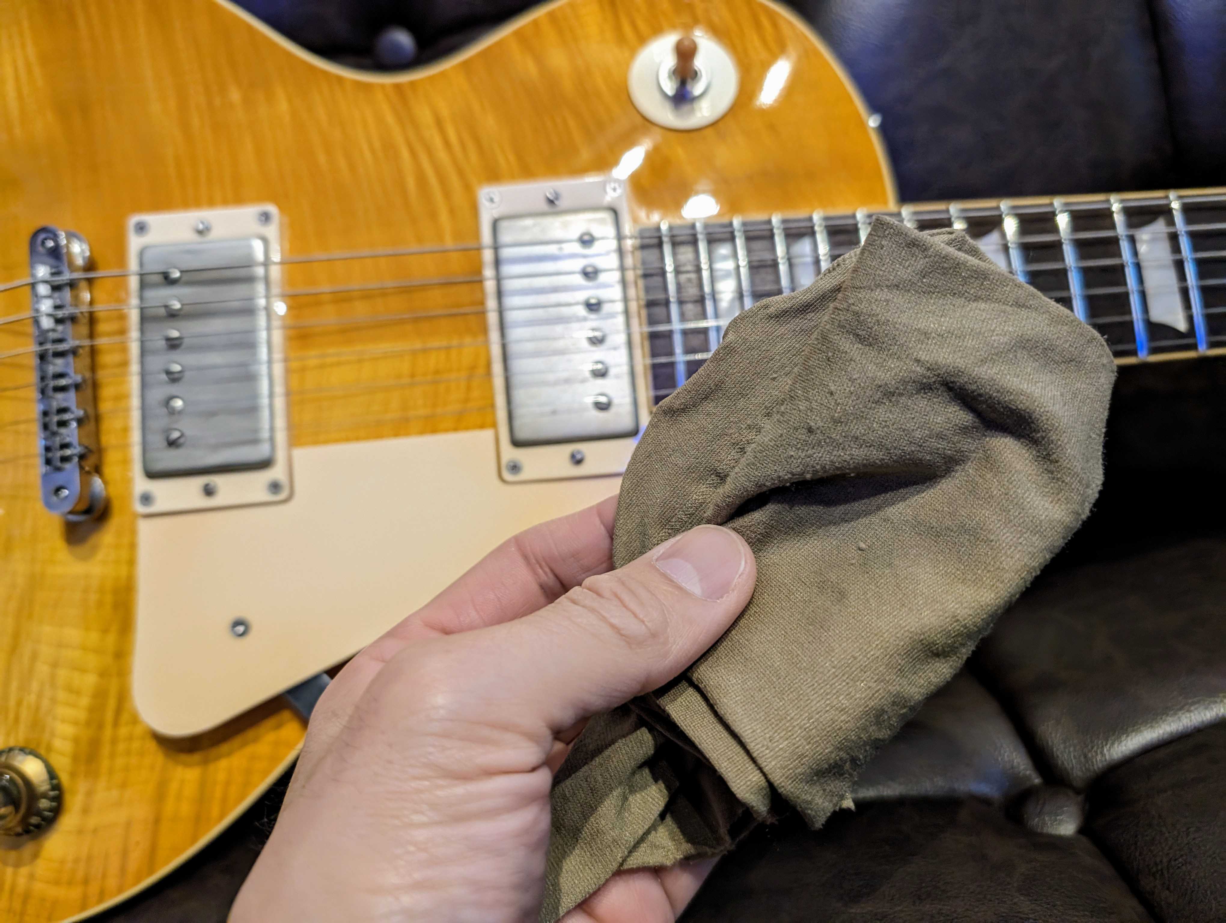 ちなみに母ちゃんとは妻のことではなくて、本当に俺を生んだ母ちゃんのストッキングです。元々はレザー用品の艶出し(これも最高)に使っていたんですが、指板に使ってみたところ、これがまぁ使えるアイテムでした。100円ショップとかでも売っているのでオススメです。