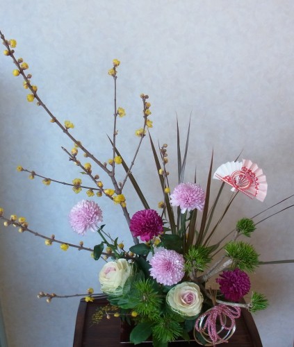 生花の花を使用してお正月のアレンジを活けてもらいました。 使用した花材は三光松、ロ…